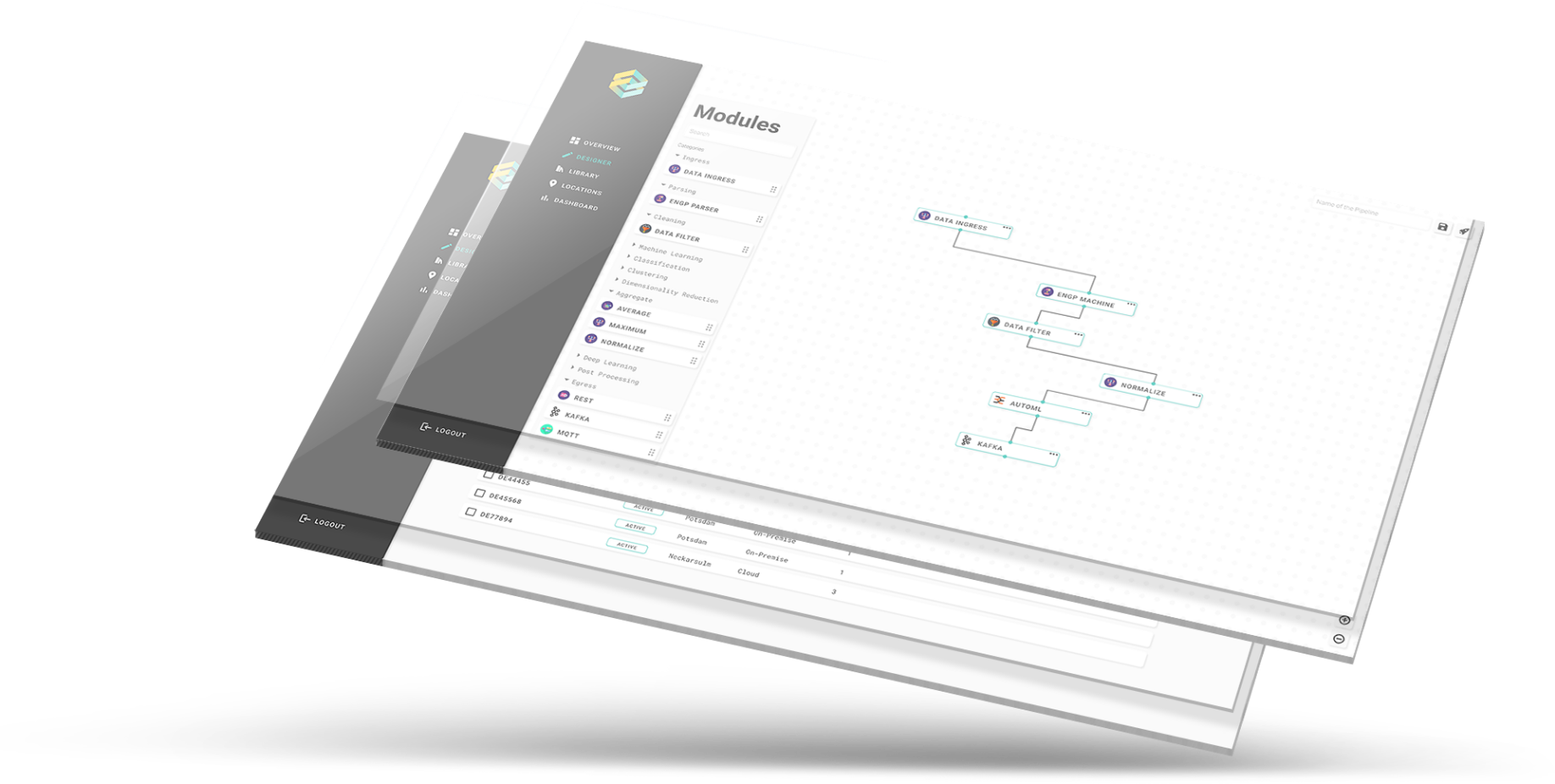 Modules can be dynamically added and exchanged using a simple drag and drop method to easily create purpose-built reusable data pipelines.
